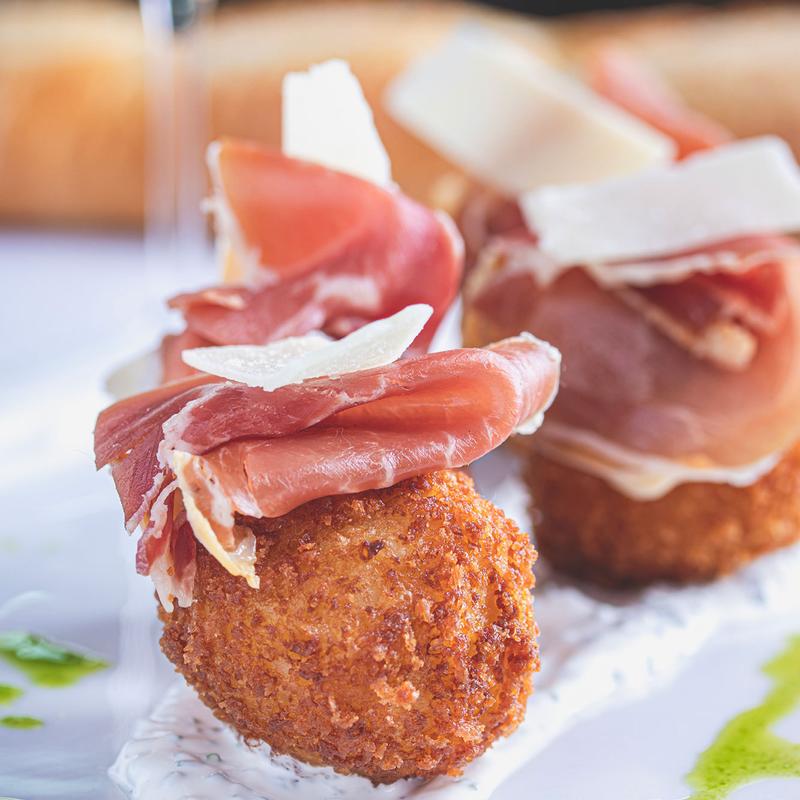 serrano ham, mozzarella, basil, tomato, arugula on house-made ciabatta bread